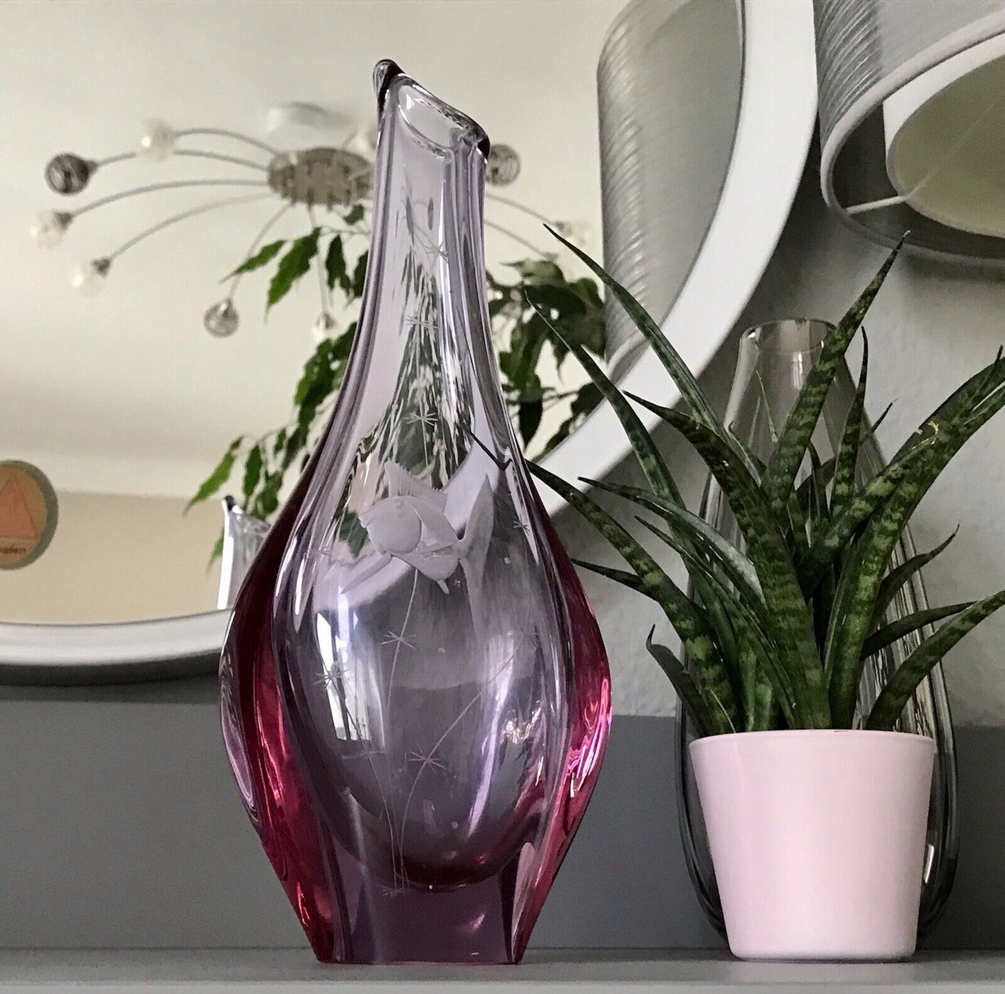 Vintage Glasvase Fisch Glas lila Alexandrit Kristallglas M. Klinger Zelezny Brod