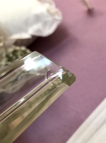 Der Stand weist Schleifspuren auf, was völlig normal bei einem alten gebrauchten Glasartikel ist.
