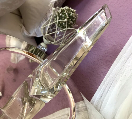 Kommodengriff präsentiert eine edle wunderschönene schwere farblose Block-Glasvase Blockvase aus Kristallglas im außergewöhnlichem geometrischen Design