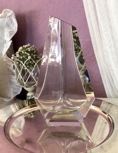 Vintage Glasvase Vase farblos Kristallglas Designer Murano ? kantig