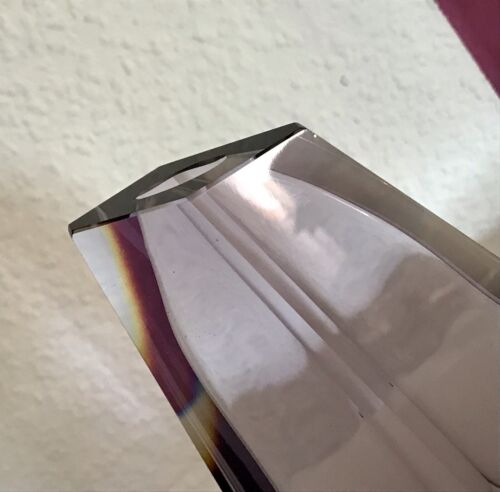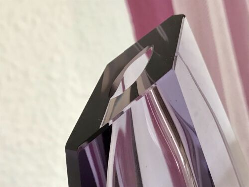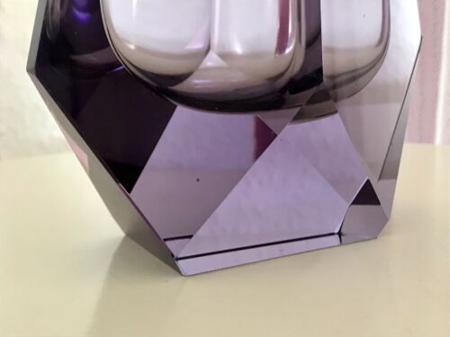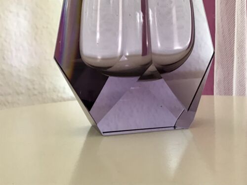 Kommodengriff präsentiert eine sehr edle wunderschönene schwere lilafarbene Block-Glasvase Blockvase aus edlem Kristallglas im außergewöhnlichem geometrisierten Design