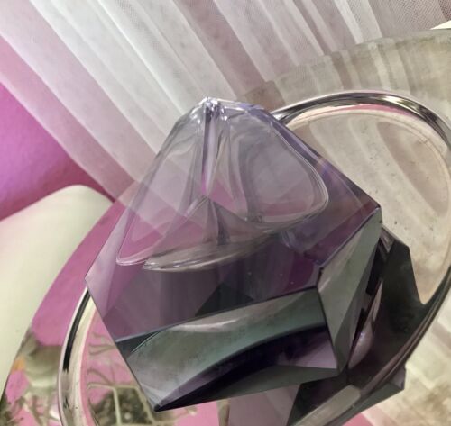 Das Design zieht alle Blicke auf sich und durch das edle brillante lilafarbene Alexandrit-Glas Kristallglas kommen alle Kanten und das ausgefallene Design zusätzlich noch zur Geltung.