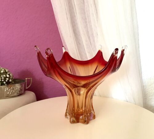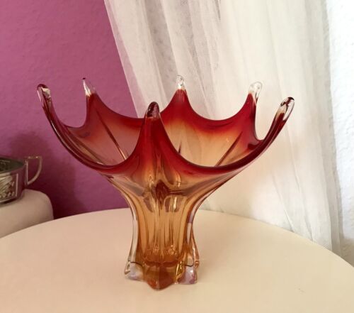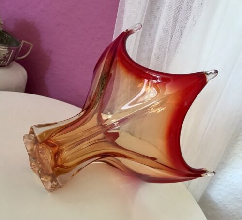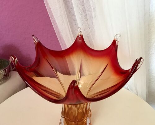 Vintage Groß Murano 50er 60er Jahre hohe Schale Glasvase Glas rot gelb einmalig