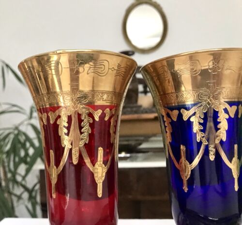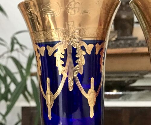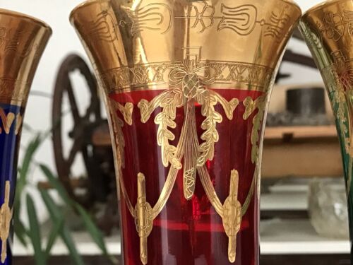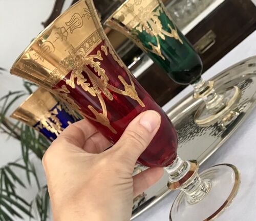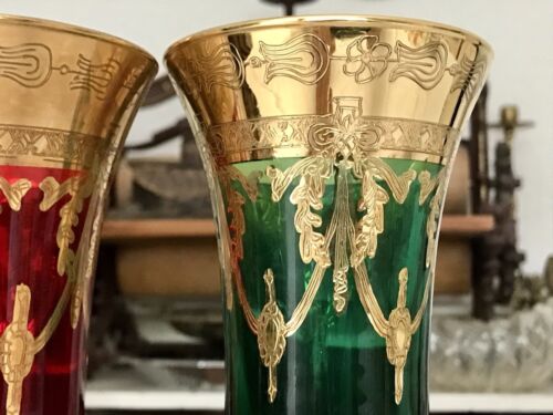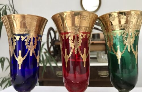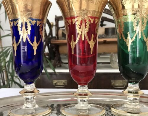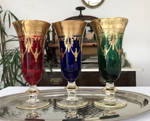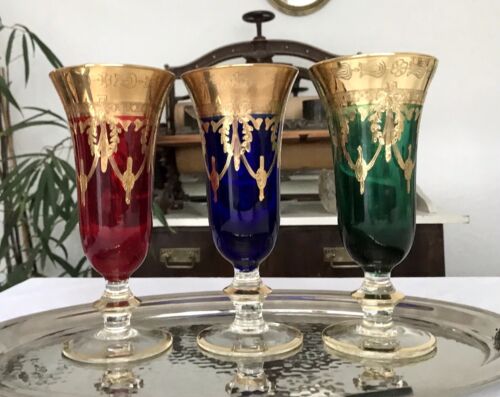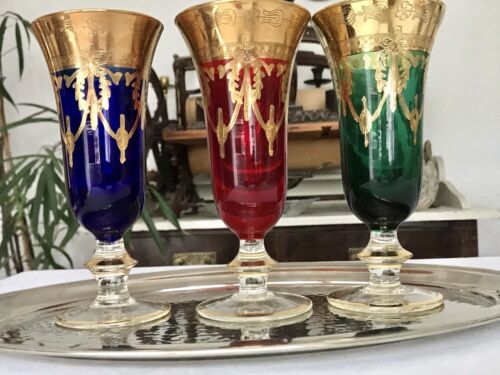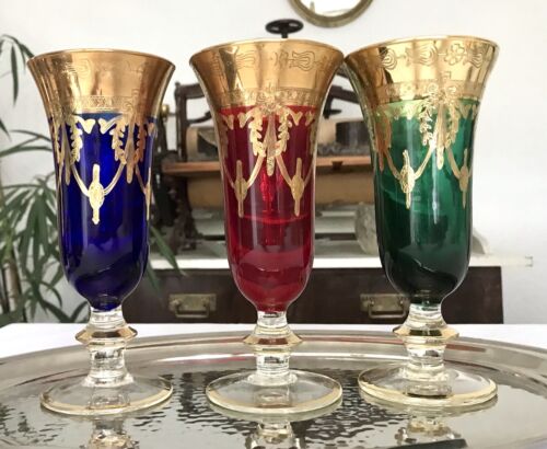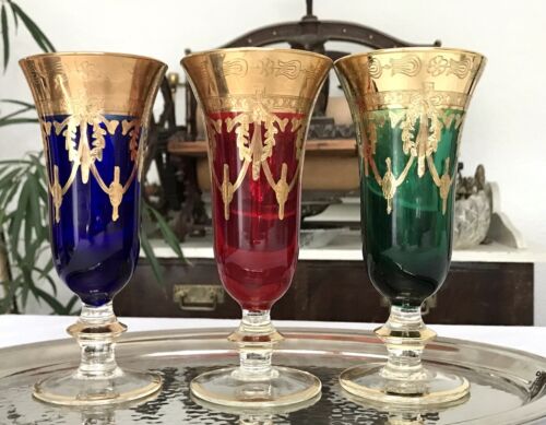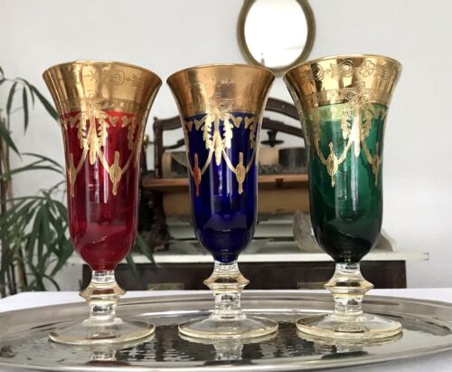 Vintage Interglass Italy 3 Sektgläser Gläser Kristallglas Sektflöten 24karatGold
