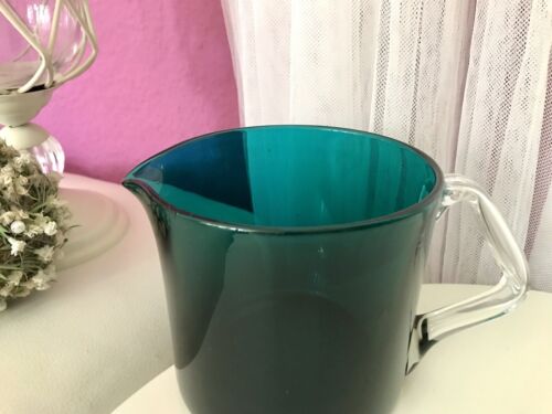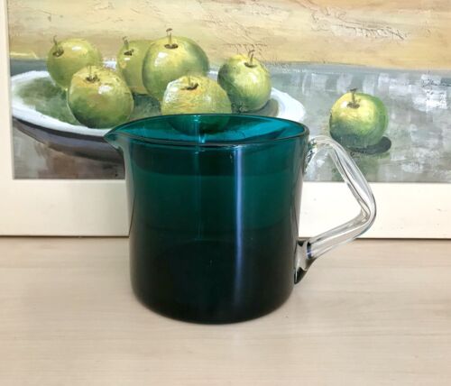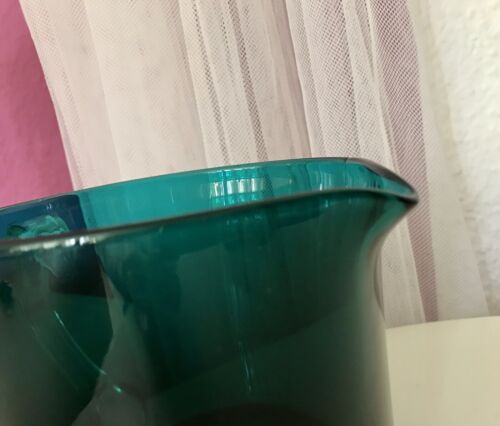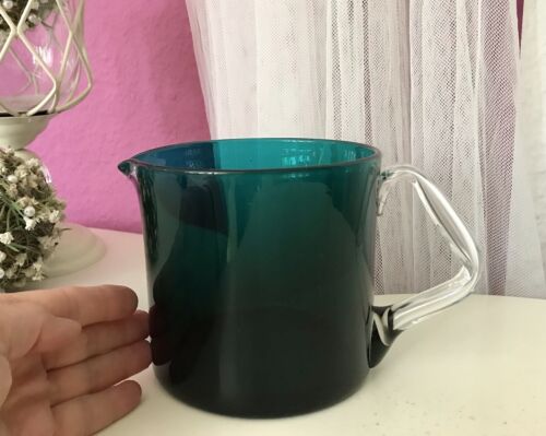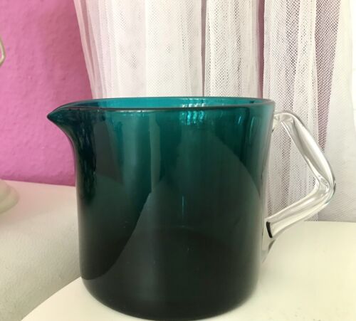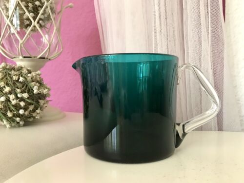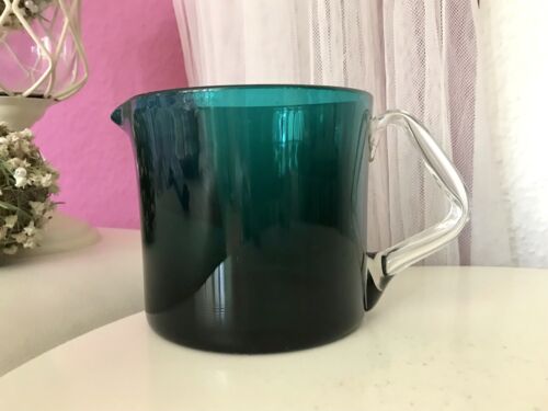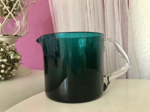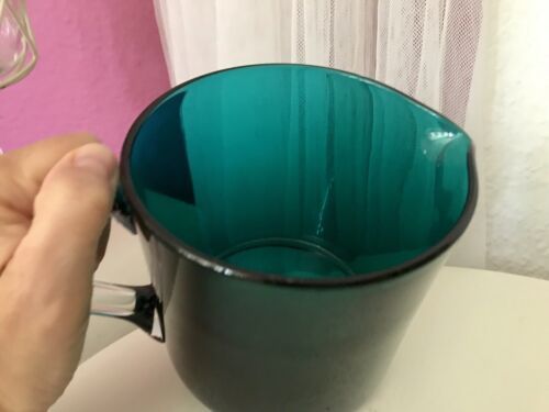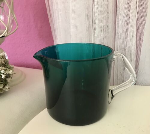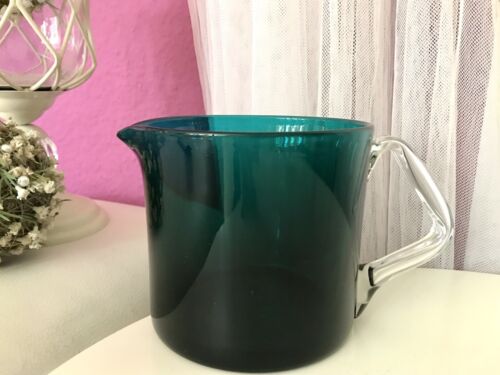 Vintage Kanne Krug Glaskrug Karaffe Glas mundgeblasen grün Riihimäen Lasi OY