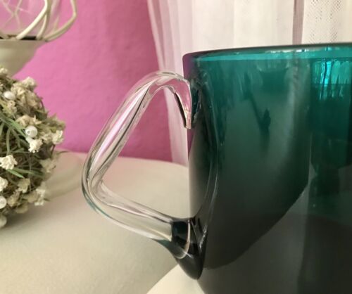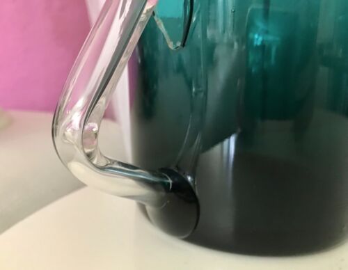 E02-33Kommodengriff präsentiert einen wunderschönen edlen mundgeblasenen Vintage Krug Kanne Glaskaraffe Karaffe Henkelkrug aus schönem grünen Glas in wunderschönem Farbton