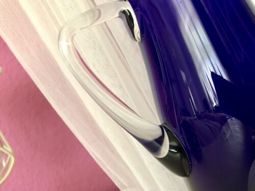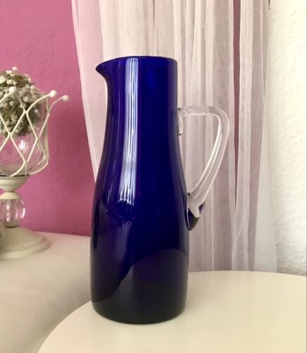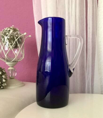R06-21Kommodengriff präsentiert einen wunderschönen edlen mundgeblasenen Vintage Krug Kanne Glaskaraffe Karaffe Henkelkrug aus schönem kobaltblauen Glas in wunderschönem Farbton