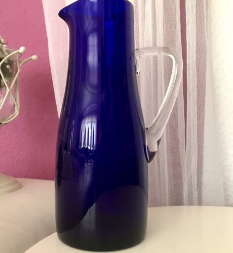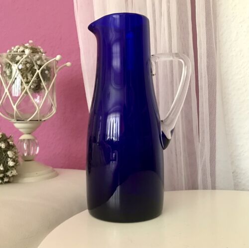 Vintage Kanne Krug Glaskrug Karaffe Glas mundgeblasen kobaltblau Skandi?