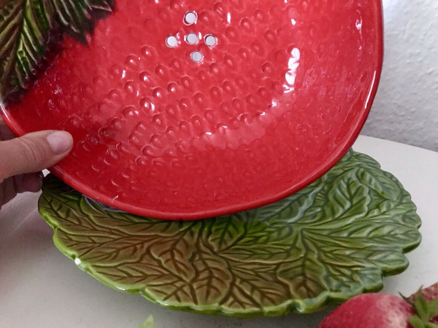 Vintage Keramik Erdbeer Schale mit Teller Untersetzer und Ablauf 2 Teile Italy