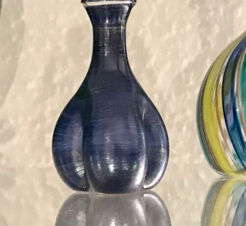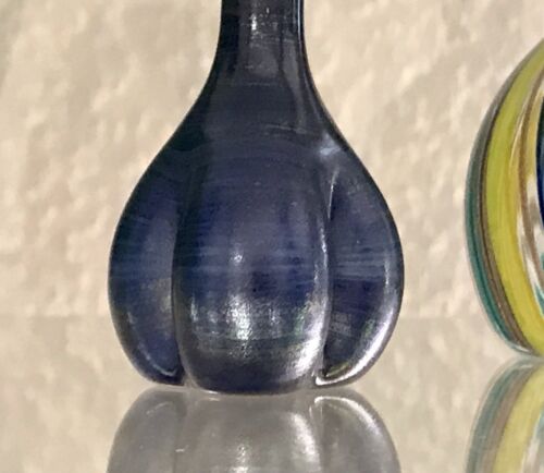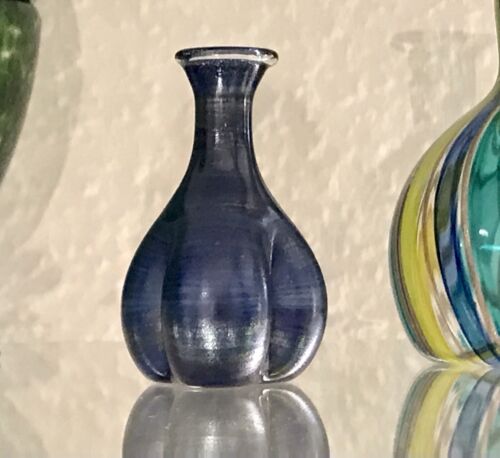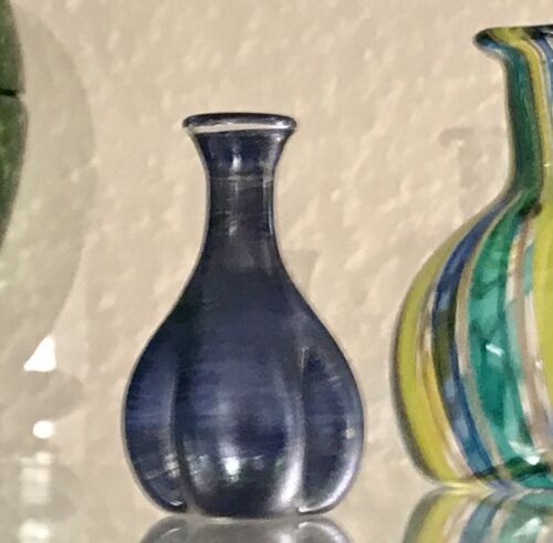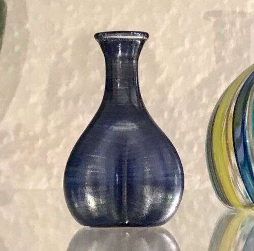Vintage kleine Vase Glasvase Streifen Edel Murano ? Blau irisierend