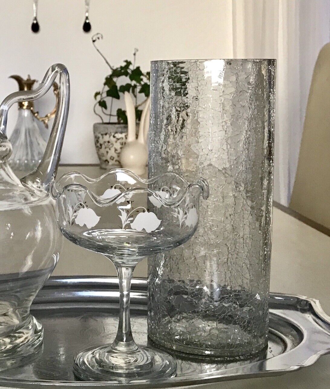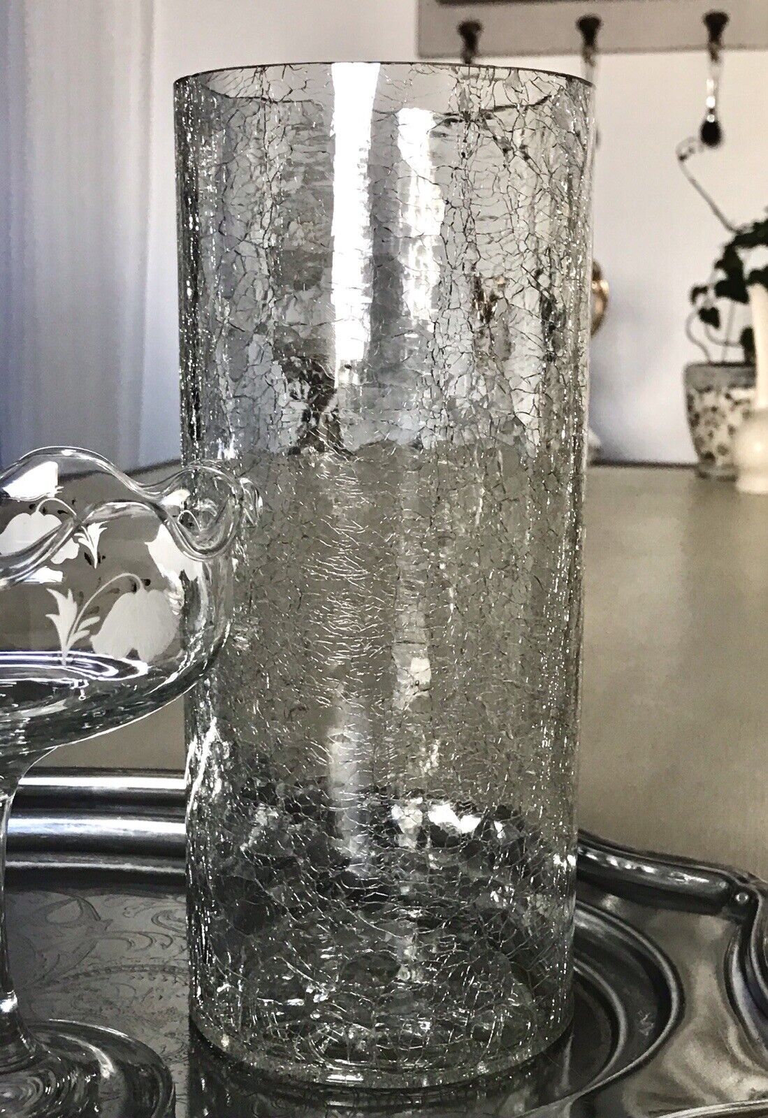 Vintage Kristallglas Kunstglas Craquelée Vase Glasvase zylindrisch groß
