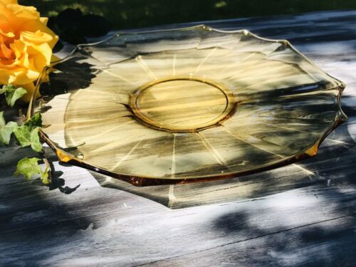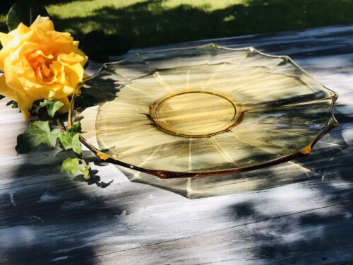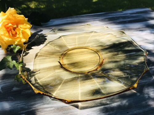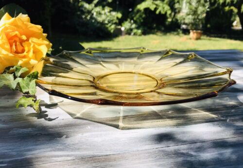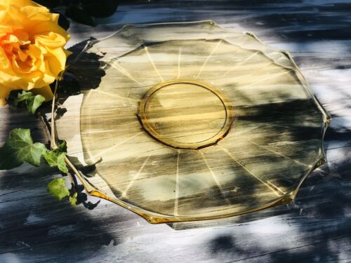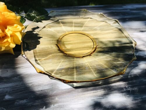 Vintage Kuchenplatte rund Bernstein Gelb Pressglas Schale Kuchenteller Schale