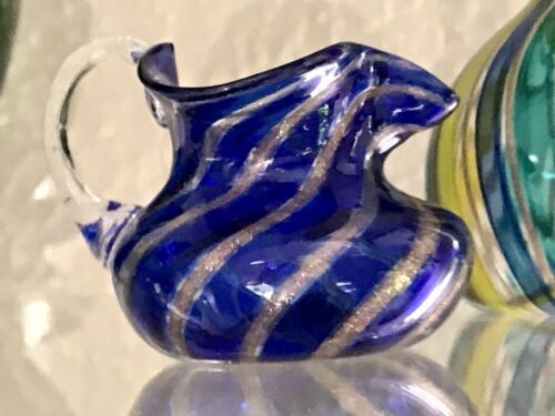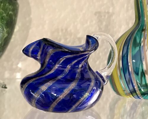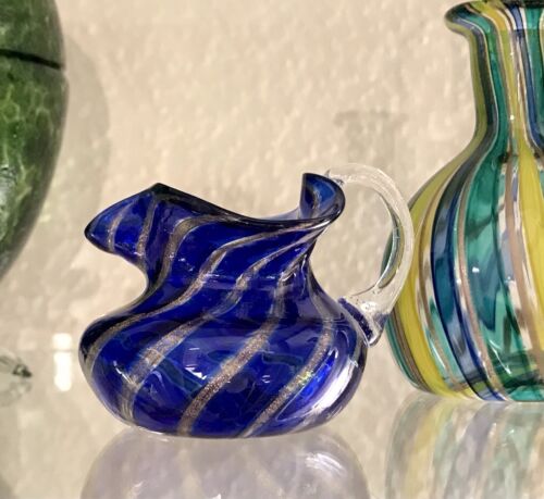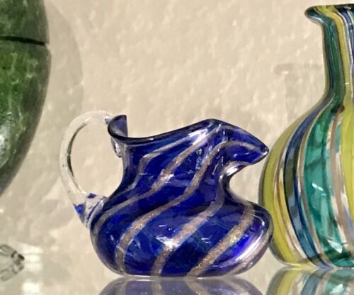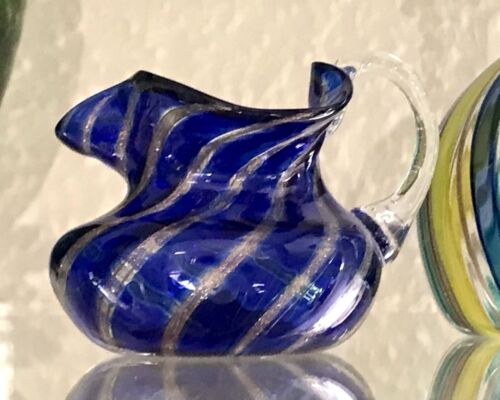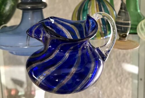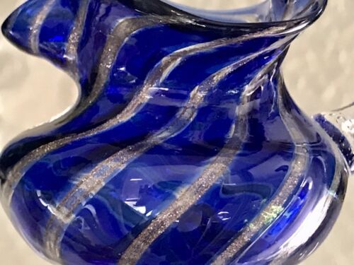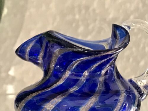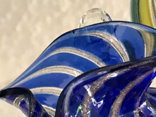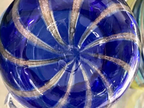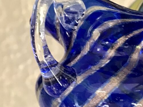 Vintage Livio Campanella ? Vase Glasvase Streifen Edel Abriss Murano Blau Gold