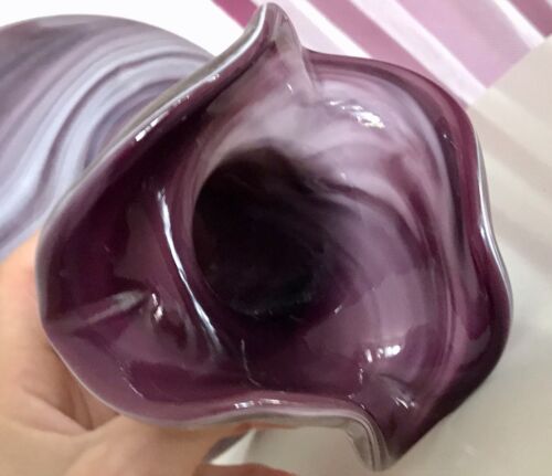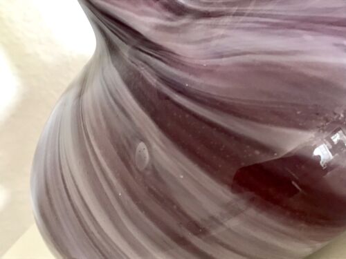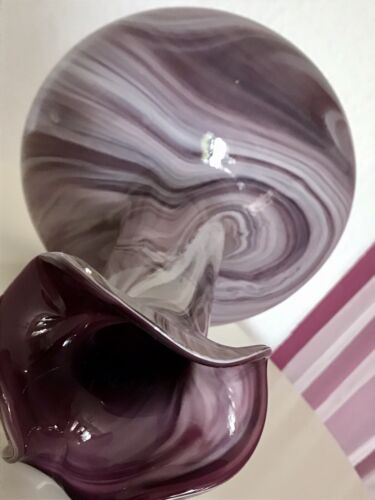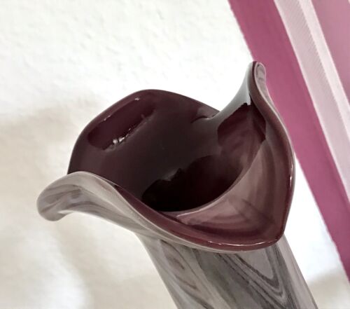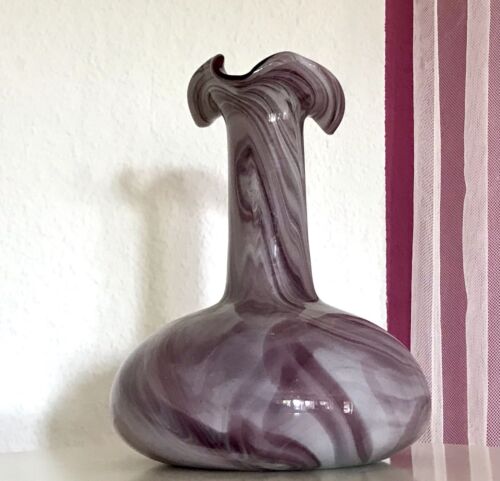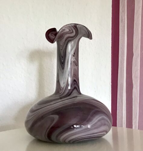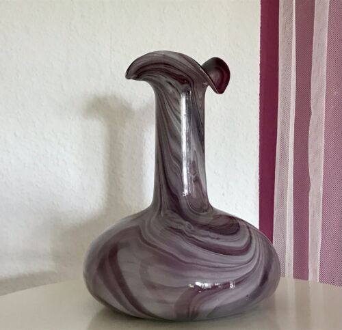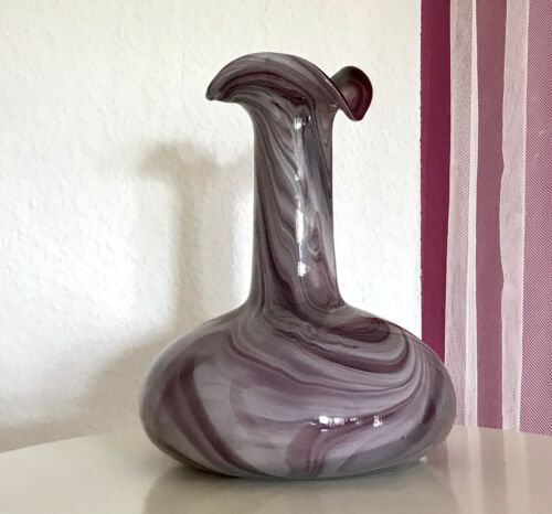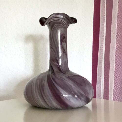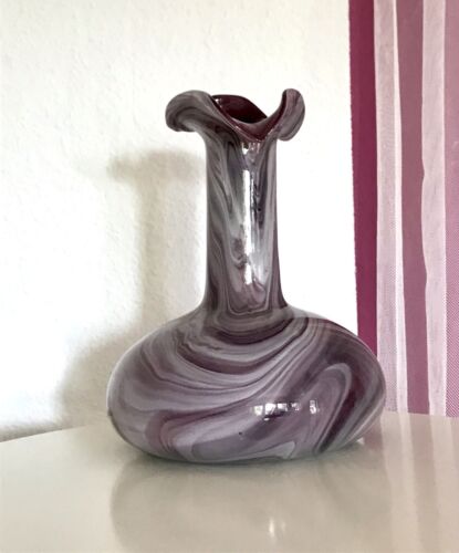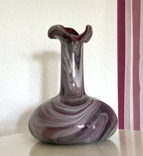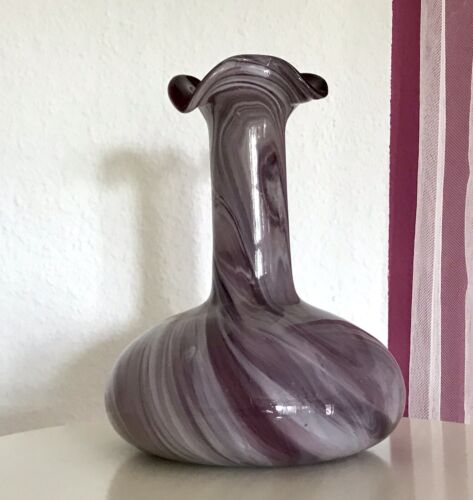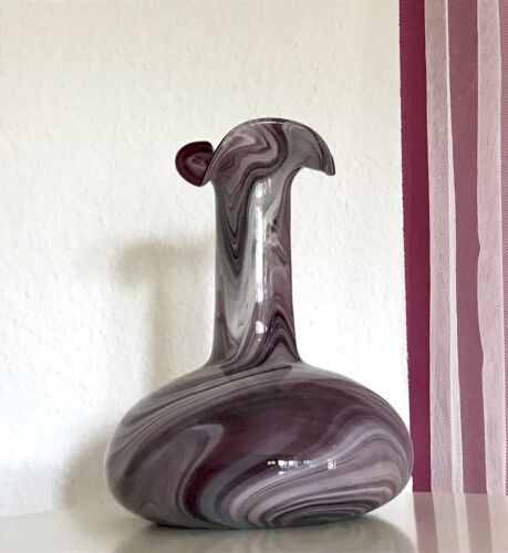B09-05Kommodengriff präsentiert eine wunderschöne edle alte wunderschön ausgeformte große mundgeblasene kunstvolle Glasvase Vase in Lilatönen aus den 60er Jahren