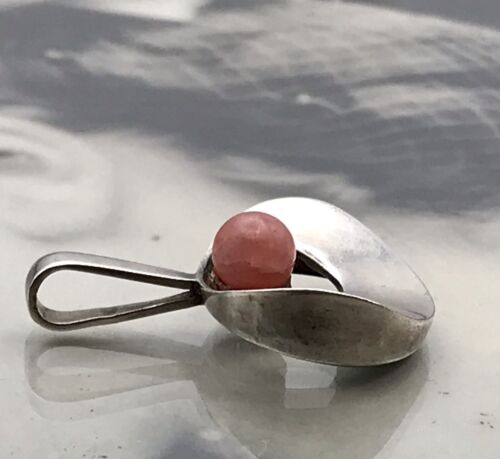 Kommodengriff präsentiert einen wundervollen edlen zauberhaften Designer Vintage Kettenanhänger Anhänger aus 835 Silber mit einer schönen Stein-Kugel vermutlich Rhodochrosit