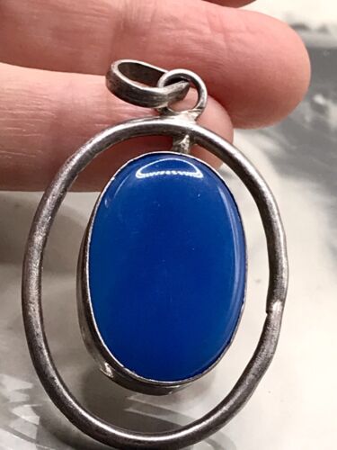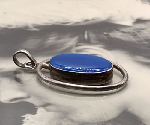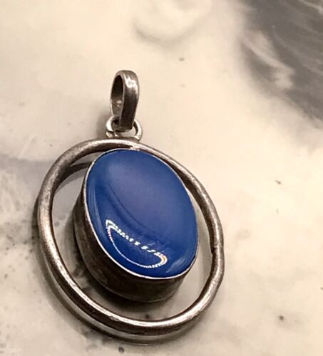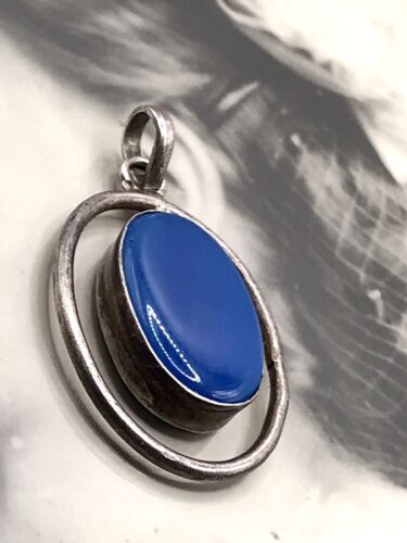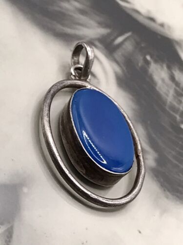 Vintage Modernist Edel Anhänger Kettenanhänger 925 Silber Design blauer Stein