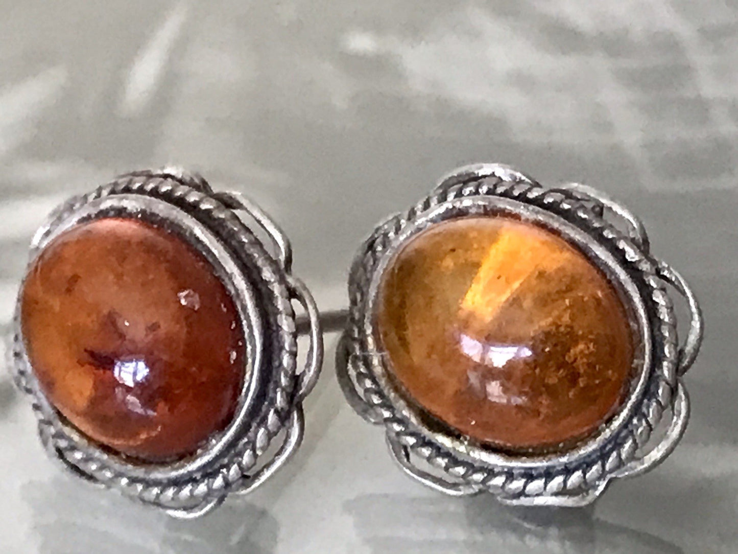 Vintage Ohrringe Ohrstecker DAMEN 925 Silber Bernstein Echtsilber Sterligsilber