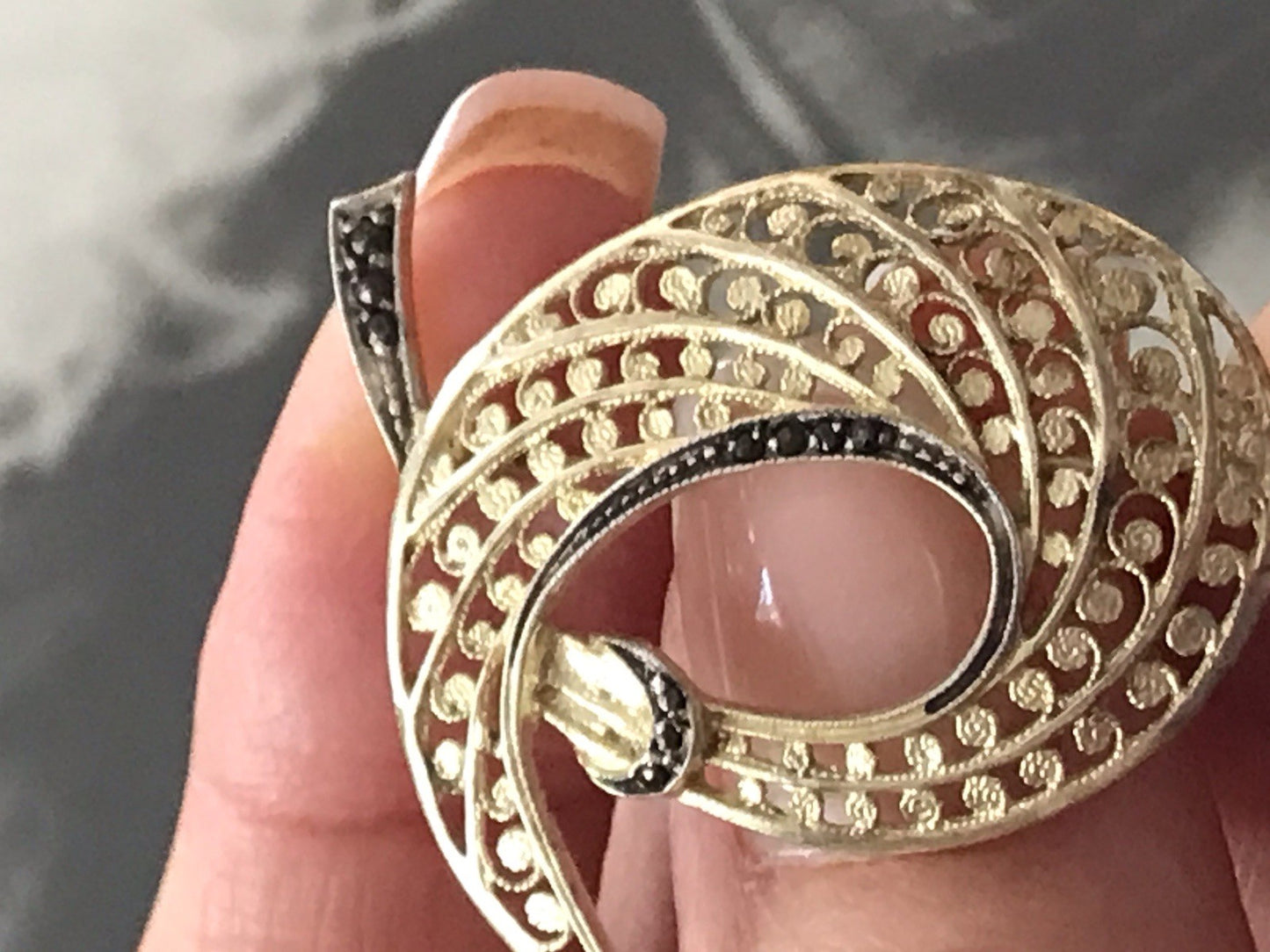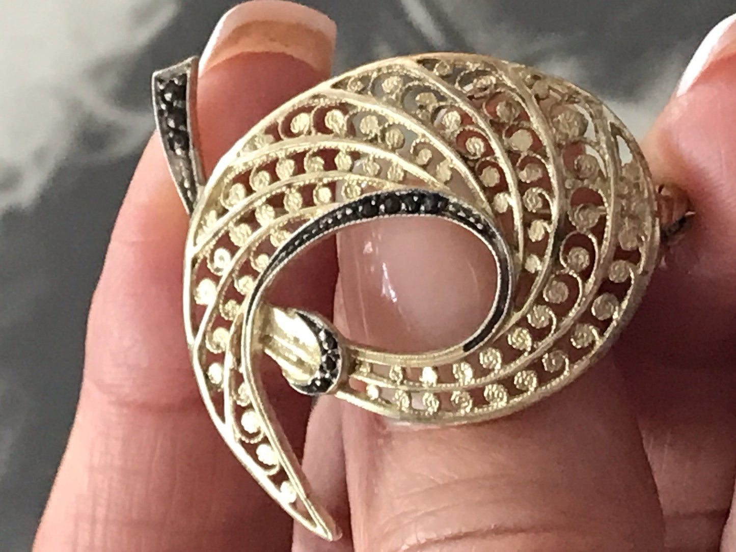 Vintage prachtvoll filigran Brosche Silber 835 Markasite vergoldet Art Déco Stil