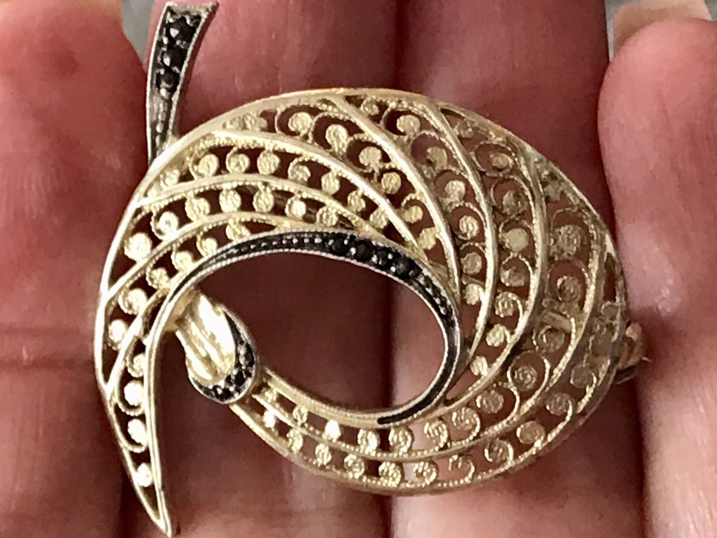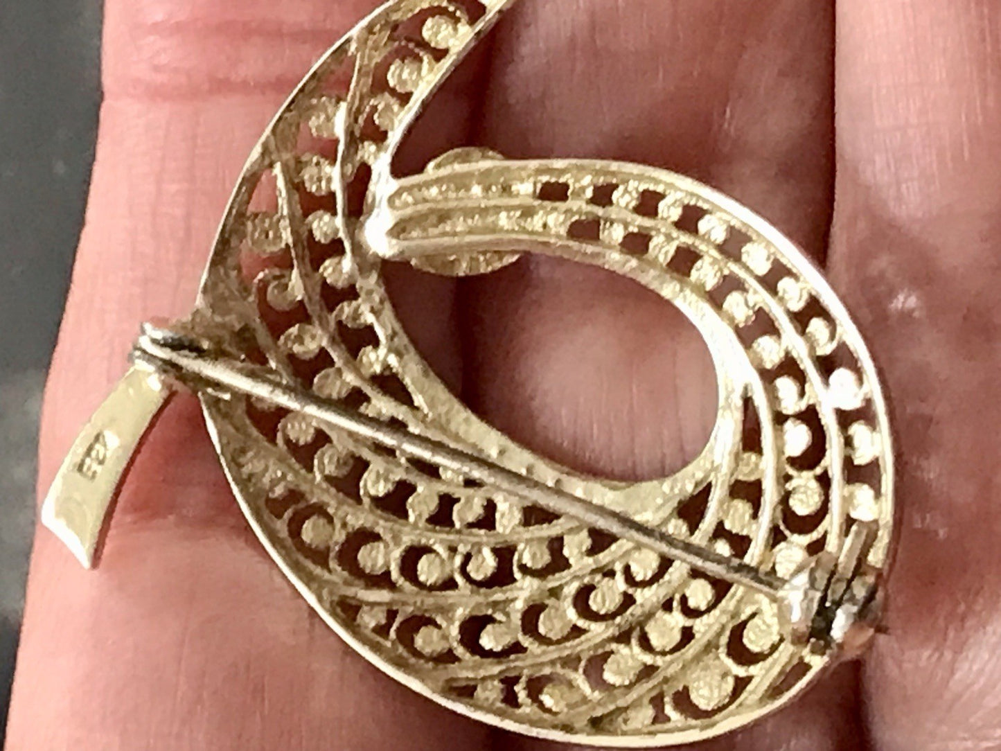 Kommodengriff präsentiert eine edle zauberhafte alte sehr geschmackvolle vergoldete Vintage Silber-Brosche
