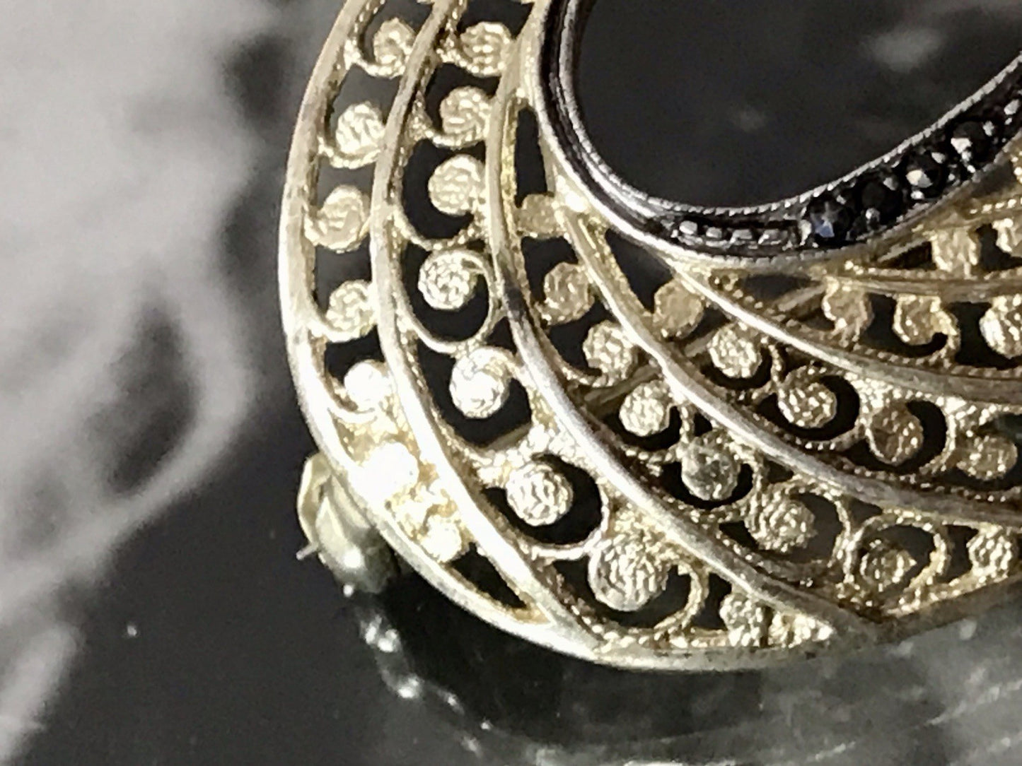 Schöne Ausformung und schöne Silberarbeit in feinem Durchbruchmuster und mit Markasiten besetzt.
