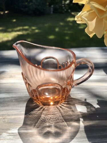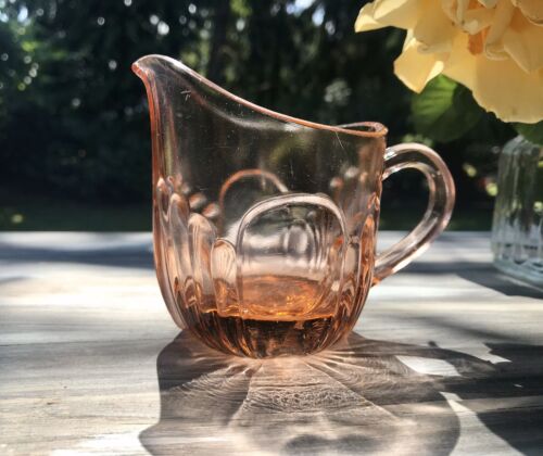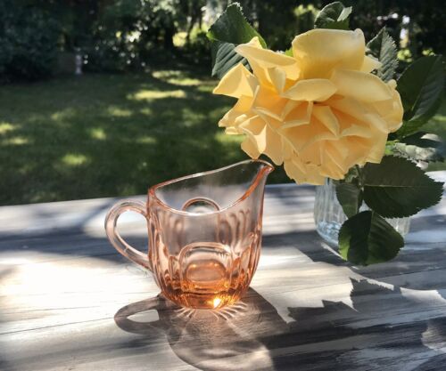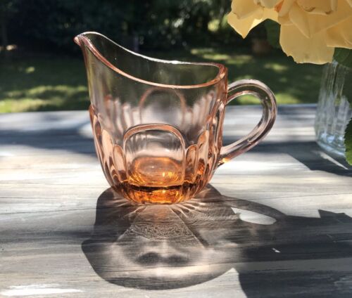 Vintage Retro Art Déco Pressglas Sahnegießer Milch- Kännchen Glas Rosalin rosa