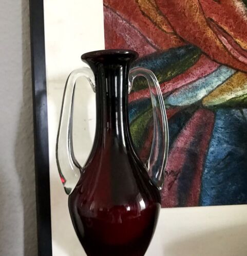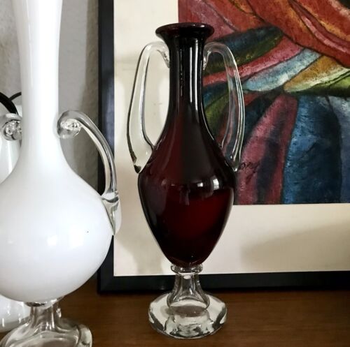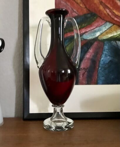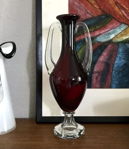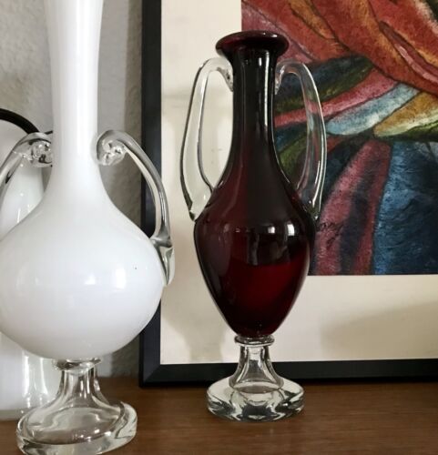 Hier ersteigern Sie nur die hohe rote Amphoren- Vase mit farblosen Henkeln!!