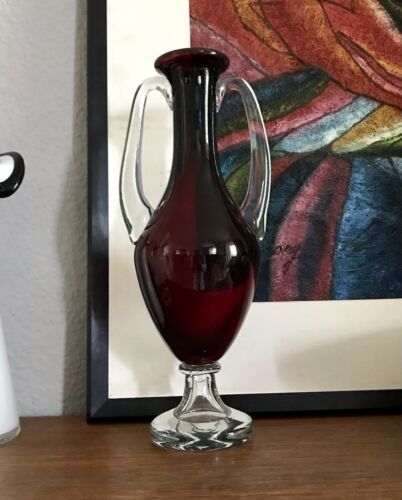 Vintage rot große Designer Vase Blumenvase Glasvase Glas Tarnowiec PRL