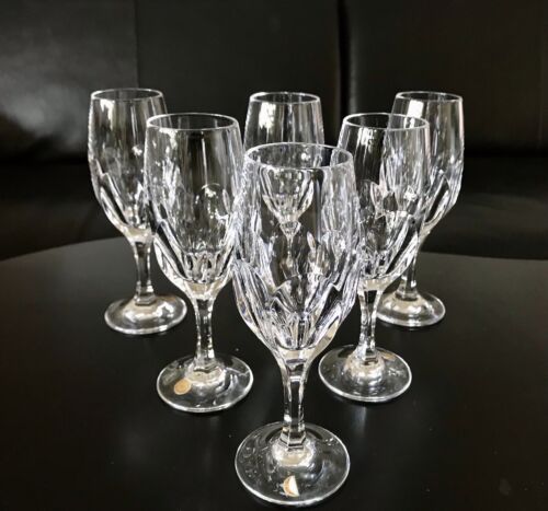 Kommodengriff präsentiert 6 wunderschöne sehr edle und hochwertig gearbeiteten Süßweingläser Gläser aus edlem Kristallglas und mit wundervollem schönen edlen Schälschliff und kantig gegliederten Stiel von Nachtmann Serie: vermutlich Sonja