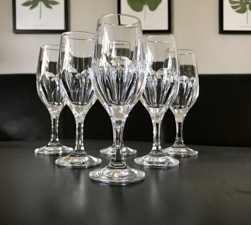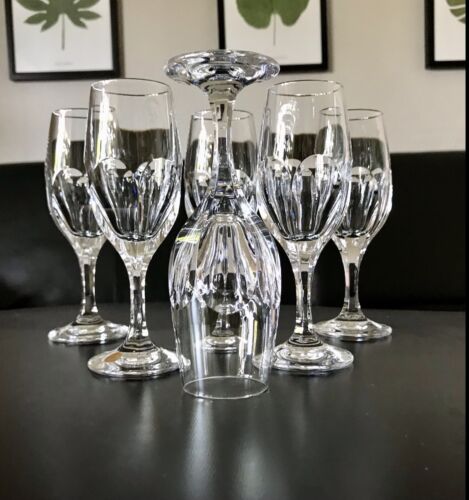 6 wunderschöne sehr elegante edle wunderbar ausgeformte markante Gläser Weingläser aus farblosem edlen Kristallglas in wunderschönem Design und Schliff.