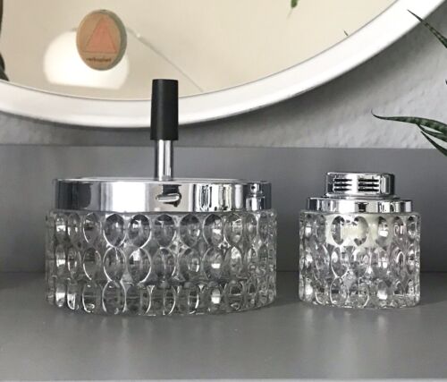 Vintage Set Erhard & Söhne Kristallglas Aschenbecher Ascher Roulette & Feuerzeug