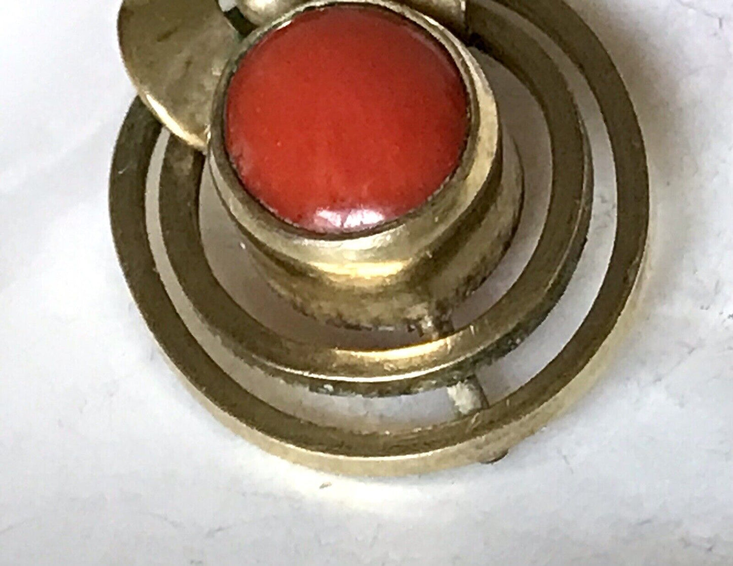Vintage TeKa Designer Anhänger koralle rot Stein Amerik. Doublè vergoldet