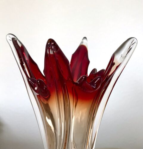 Vintage Vase Glas mundgeblasen Murano Glasvase twisted rot apricot Zipfel