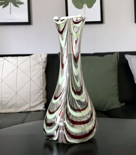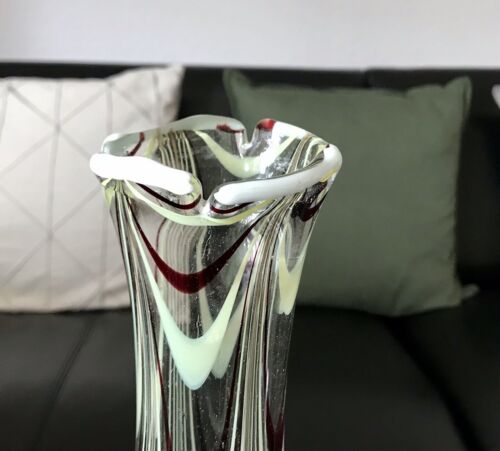 Vintage Vase Glasvase Glas mundgeblasen Abriss grün rot Murano wunderschön!