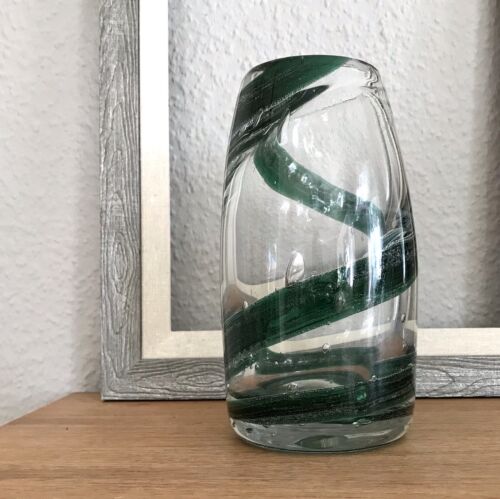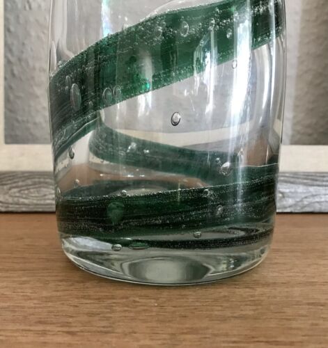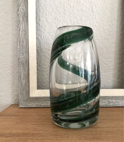 Tolle einmalige Optik mit in das farblose Glas spiralförmigen streifenförmigen Einschmelzungen und Luftblasen.