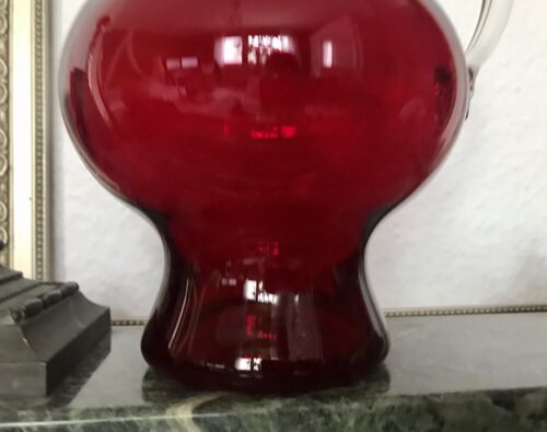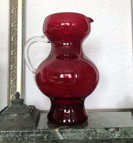 Vintage Vase Glasvase Henkelvase Krug 60er 70er rot Glas mundgeblasen Schön!!