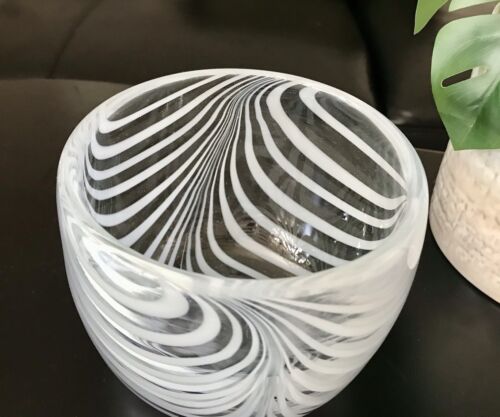 Vintage Vase Glasvase Schale Glas mundgeblasen signiert Murano ? Fadenglas