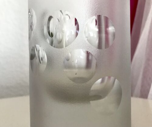 Bubble-Muster als eingeschliffene nach innen konkave Kreise spiralförmig um den Glaskorpus als 2er Reihe angeordnet.