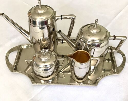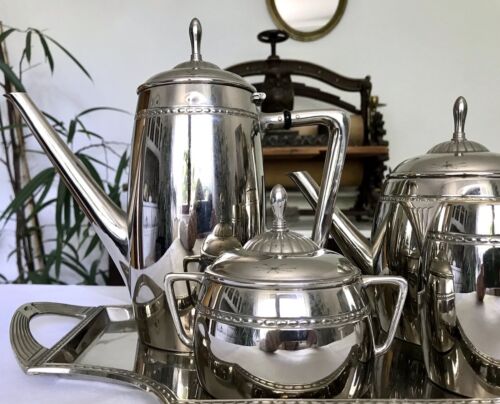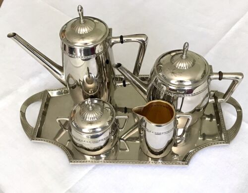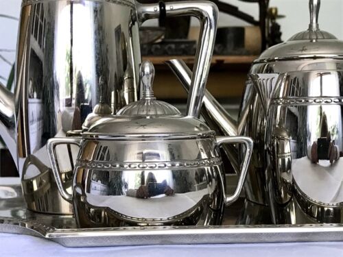 Kommodengriff präsentiert ein wunderschönes antikes 5teiliges wohl verchromtes oder vernickeltes ? Jugendstil WMF Kaffe- und/oder Tee-Kernstück